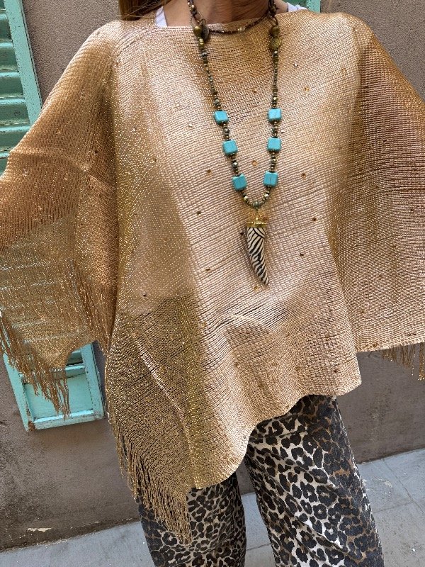 Ponchito/Capa italiana de hilo de seda con apliques pegados de piedritas cuadradas.